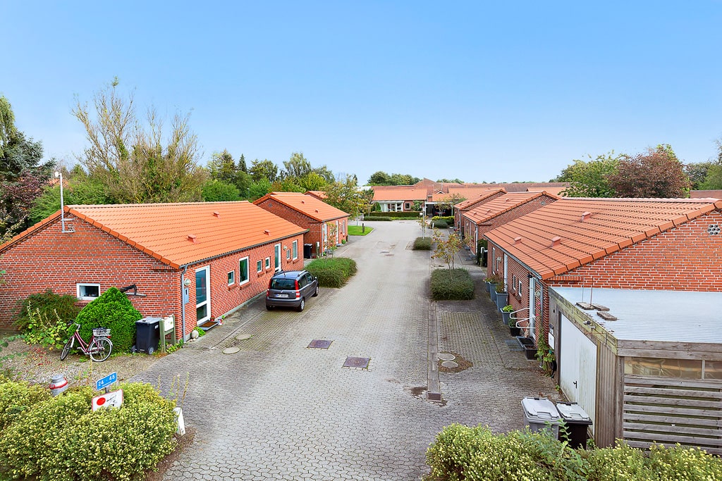 Boligerne er beliggende i et roligt villakvarter i Assentoft, og består af fine røde murstens rækkehuse med have og hvoraf en del har egen carport.