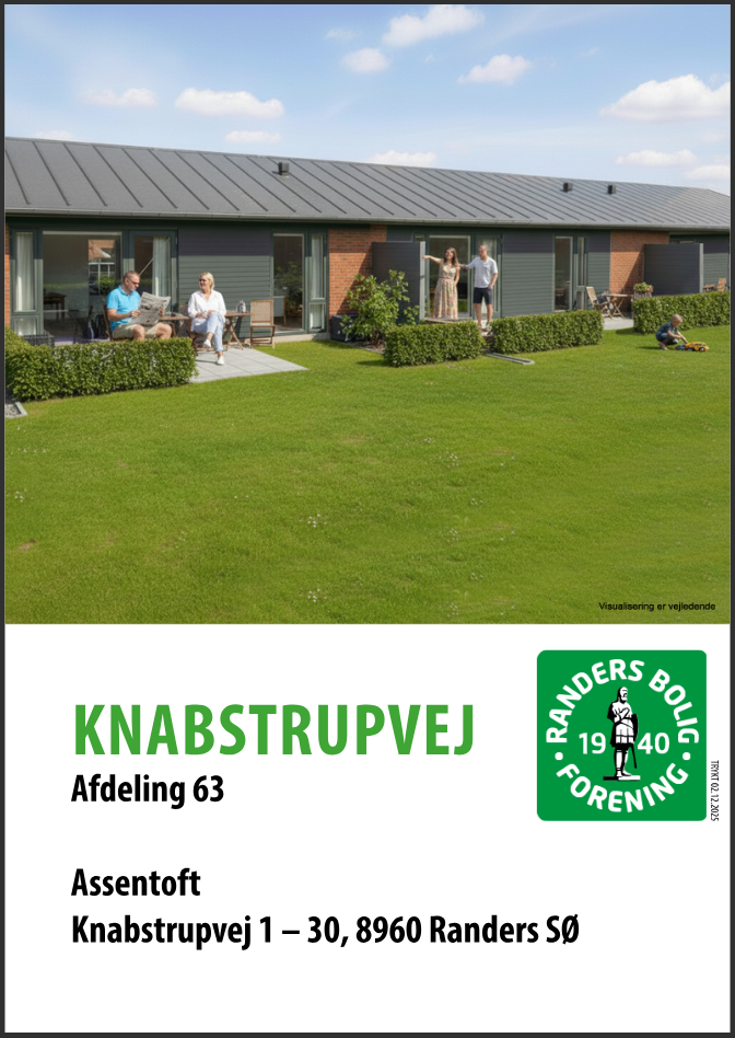 Nu har du muligheden for at få nøglerne til en helt ny, lys og indbydende bolig på Knabstrupvej i Assentoft. De 27 nye rækkehuse er opført med fokus på fleksibilitet og tilgængelighed og står klar til indflytning d. 1. juli/1. august 2026. (Med forbehold for ændringer).